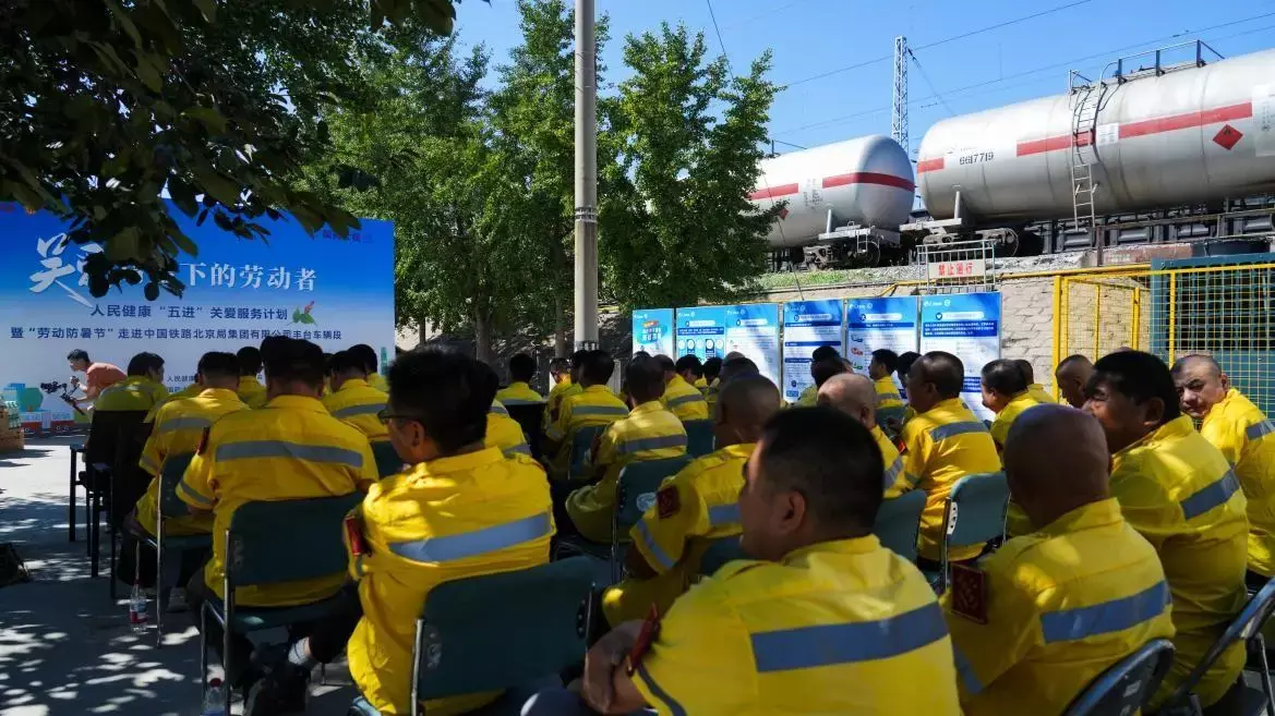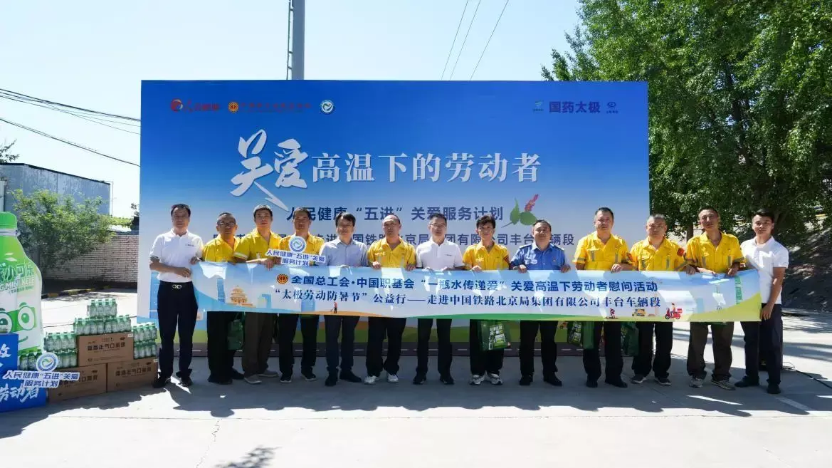 当天,人民健康在“五进”关爱服务计划基础上,联合中国职工发展基金会,并在国药太极的支持下,将“劳动防暑节”关爱行动带到了这里。这次以“关爱高温下的劳动者”为主题的行动,通过赠送防暑物资、开展健康科普,为一线铁路职工送去清凉与关爱。