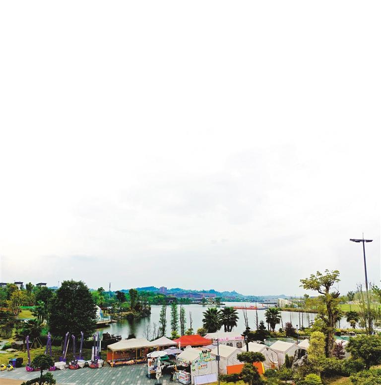 公园入口有一处特色集市,其中一家饮品铺子格外忙碌。老板娘丫丫姐在这里开店两年了。她扎着围裙,在操作台前熟练地做着咖啡。“坐地铁过来的人特别多,铜梁过来的,中心城区过来的,每天都能遇到。”丫丫姐一边忙一边说,“天气好的时候更不用说,客人都坐到了外面。”