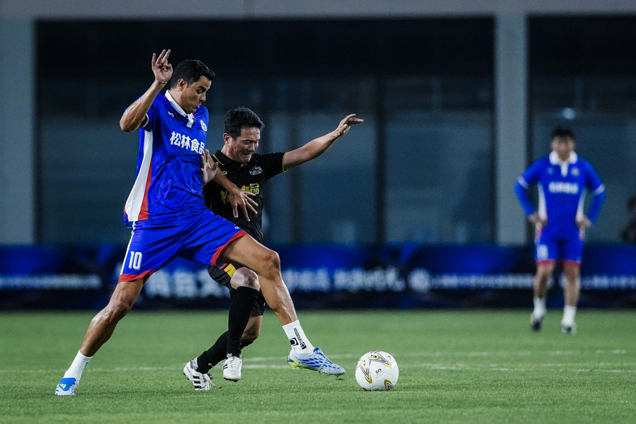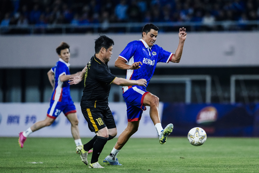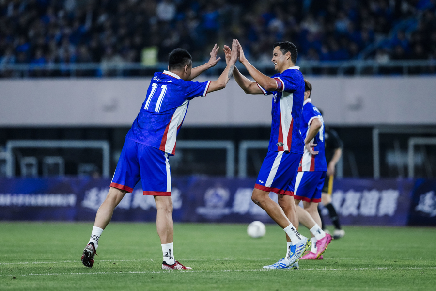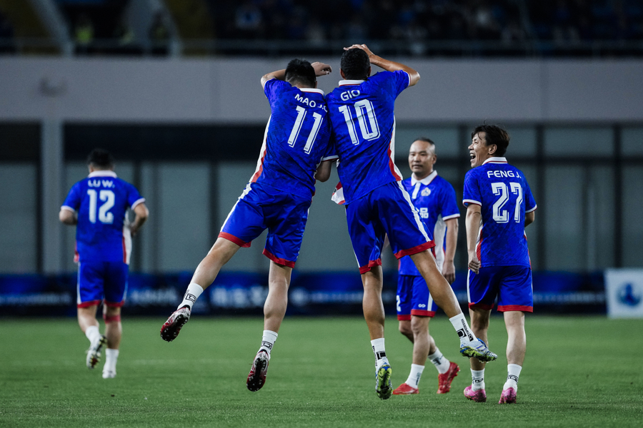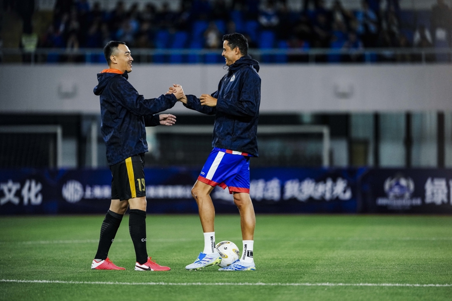 这场比赛颇具新意,范志毅上下半场分属两队出战。上半场他与莫雷诺并肩作战,第35分钟下场前,更是将队长袖标郑重交给莫雷诺,传承申花精神。下半场范志毅换队登场,为比赛增添别样趣味。重回申城赛场的莫雷诺也状态火热,屡屡上演高光时刻,完成梅开二度。最终,东方荣耀队3比2取胜。