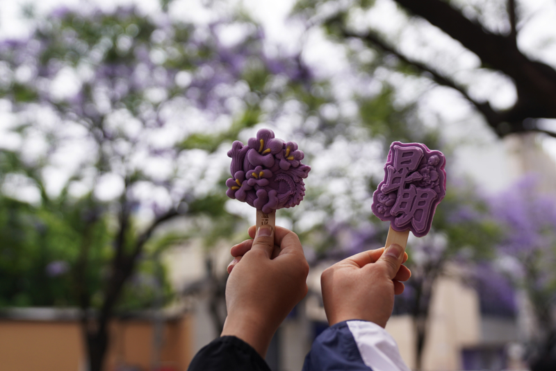 4月26日,游客在昆明市教场中路展示文创雪糕。 新华社发(梁志强摄)