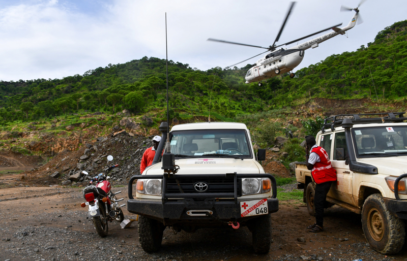 4月27日,救援人员在南苏丹首都朱巴附近的坠机现场工作。 新华社/路透